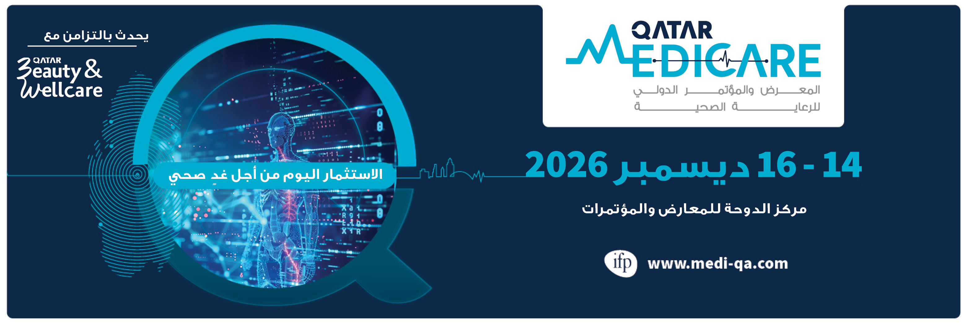 معرض ومؤتمر قطر للرعایة الطبیة، الذي تم تأسیسھ بالفعل كمنصة رائدة للابتكار في مجال الرعایة الصحیة، یتوسع في عام 2025 مع إطلاق معرض الجمال والعنایة بالصح ة. ستخلق ھذه الإضافة الجدیدة الدینامیكیة بیئة شاملة تلتقي فیھا الرعایة الصحیة والجمال والعافیة. تھدف ھذه الفعالیات مجتمعة إلى دفع عجلة الابتكار وتعزیز التعاون وعرض أحدث التطورات في ھذه القطاعات المترابطة . یُعقد ھذا الحدث المزدوج تحت رعایة وزارة الصحة العامة، ویؤكد التزام قطر بتعزیز الرعایة الصحیة والعافیة، بما یتماشى مع رؤیتھا الوطنیة 2030 . مع التركیز على النمو والابتكار والصحة الشاملة، تعد ھذه فرصة لا تفوت لأصحاب المصلحة في قطاعي الطب ونمط الحیاة .